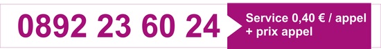 hors coût de la communication 0,40 €/min ou 0,60€/min + prix de l'appel